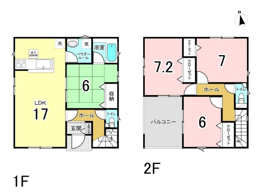 - システムキッチン、カウンターキッチン、IHクッキングヒーター、オール電化、シャンプードレッサー、洗浄便座、浴室乾燥機、追い焚き、複層ガラス、モニタ付インターホン、床下収納、トイレ2箇所